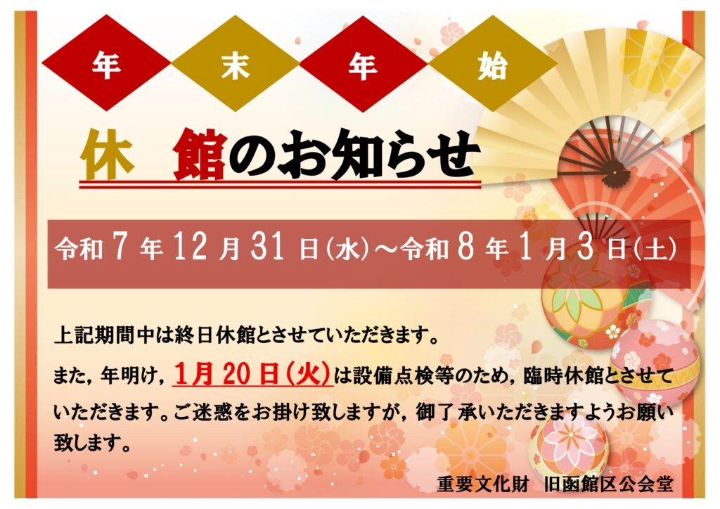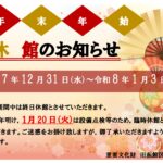 【年末年始休館日と1月の臨時休館日のお知らせ】