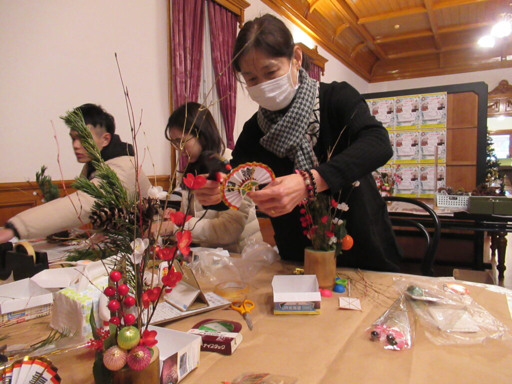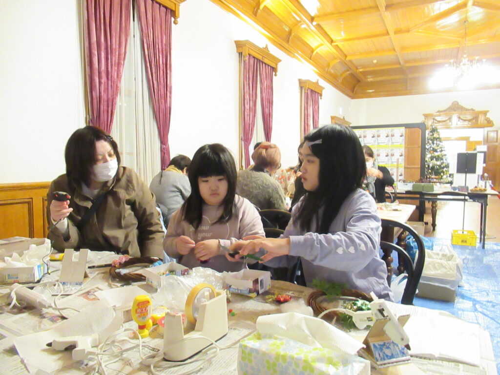 出来上がった作品を手に写真撮影! 函館市民の皆さんの他,遠方からのお客様もいらっしゃいました。思ったより本格的で楽しかった!初めてだったけど,優しく教えていただき良い作品ができました!とお声をいただきました。お部屋や玄関に飾って楽しいクリスマス&年末年始をお過ごしくださいね。ご協力いただいた創造華縁さん,ご参加のみなさま,ありがとうございました。