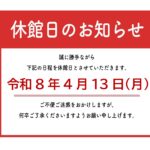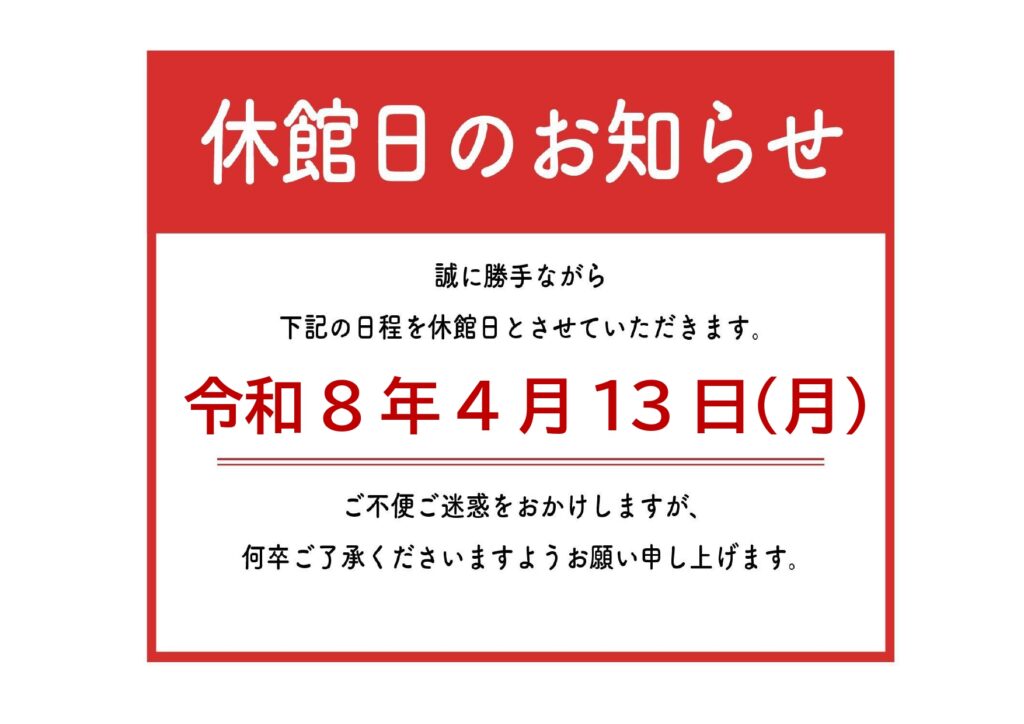 【令和8年4月13日(月)】臨時休館日のお知らせ
